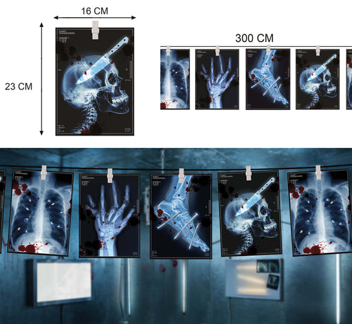 Creëer een angstaanjagende sfeer met deze unieke vlaggenlijn met rontgenscans! Perfect voor Halloween decoratie die echt indruk maakt. 3 meter - i...