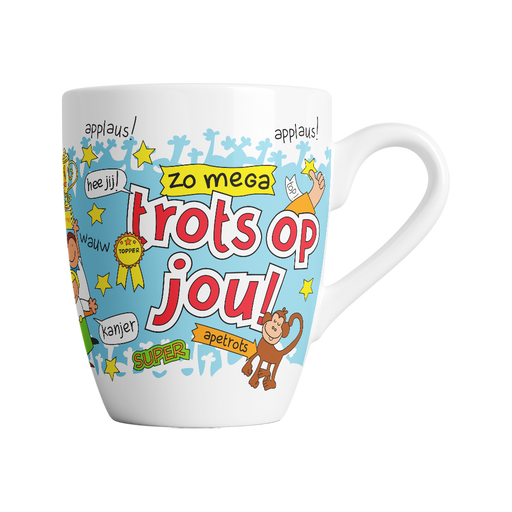 Deze cartoon mok zou je leuk als cadeau kunnen geven.