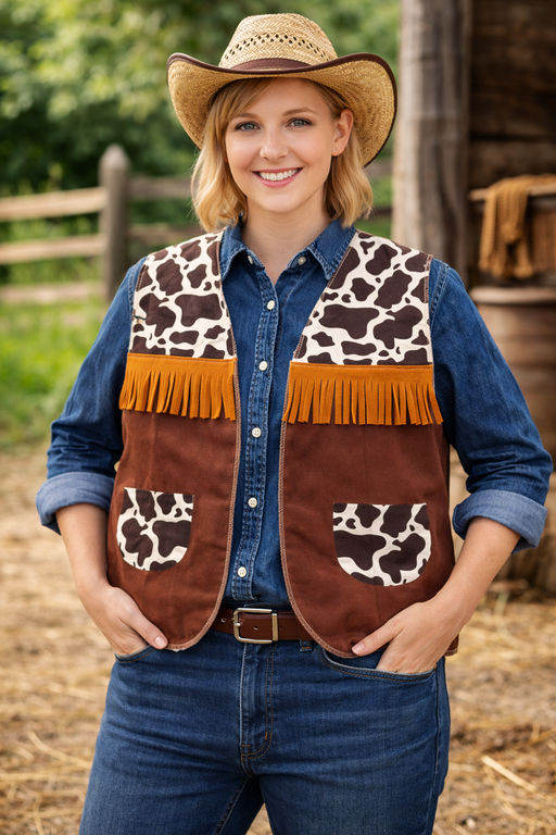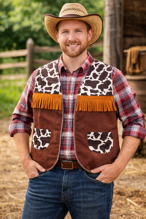 Klassieke cowboyvest voor volwassenen met een stoer, western design. Perfect voor carnaval, themafeesten of kostuum evenementen. De vest heeft een ...