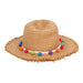 Breng je zomerse Ibiza outfit tot leven met deze speelse bohemian hoed! Het strodesign in combinatie met de vrolijk gekleurde pompoms maakt deze panamahoed perfect voor zonnige strandfeesten, festivals of een zomerse tuinparty.