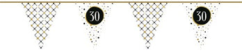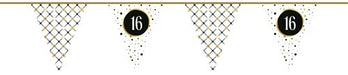 Breng sfeer en feestvreugde in elke ruimte met deze dubbel bedrukte vlaggenlijn uit de stijlvolle Festive Gold serie. Gemaakt van hoogwaardig papier, biedt deze vlaggenlijn een elegante en feestelijke uitstraling die perfect is voor verjaardagen en andere speciale gelegenheden. Met een royale lengte van 6 meter is hij ideaal om een feestlocatie snel en eenvoudig te decoreren.