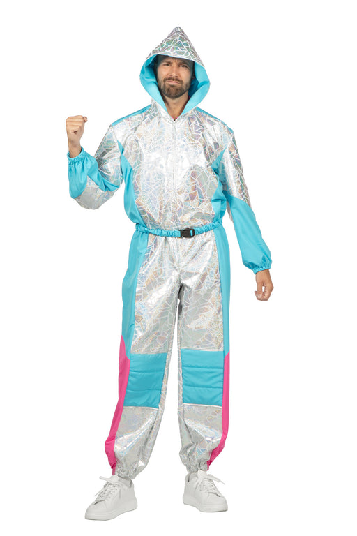Trainingspak voor heren in retro stijl. Met dit vrolijke pak in diverse neon kleuren ben jij klaar voor de foute party of jaren 80 themafeest.