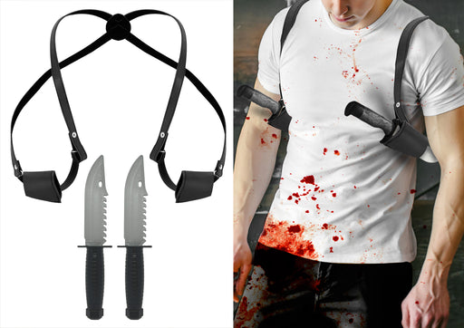 Deze schouderholster met messen is perfect voor elk Halloween kostuum. De schouderholster is aanpasbaar, zodat het voor elke lichaamsbouw te dragen...