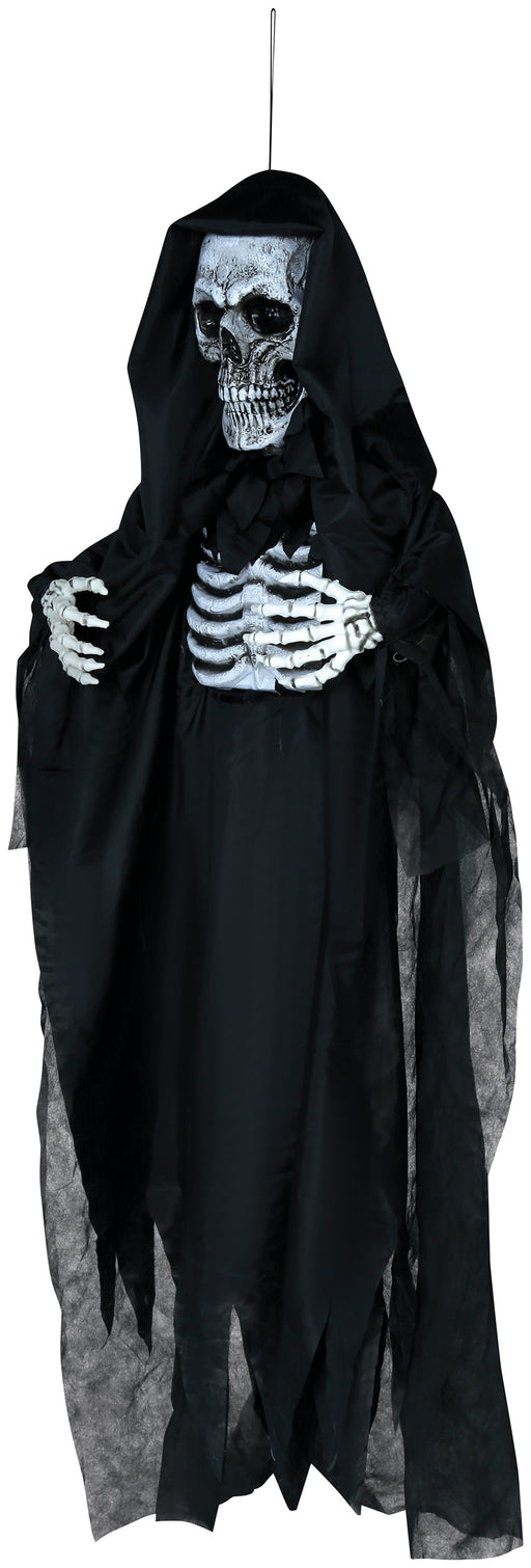 Deze Magere Hein houdt niet ven geluid. Maak dus niet teveel lawaai anders komt hij achter je aan met zijn zeis. Deze mooie interactieve halloween...