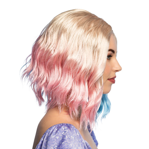 - Een Harley Quinn pruik met blonde vlechten en roze/blauwe punten