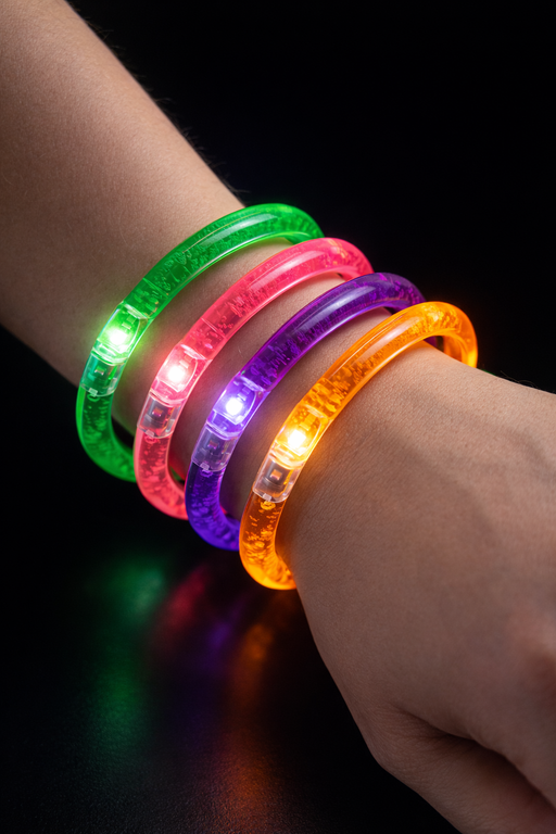 Verlicht je feest met deze set van 4 neon LED armbanden. Perfect voor festivals, carnaval, en nachtelijke evenementen. De armbanden geven een helde...