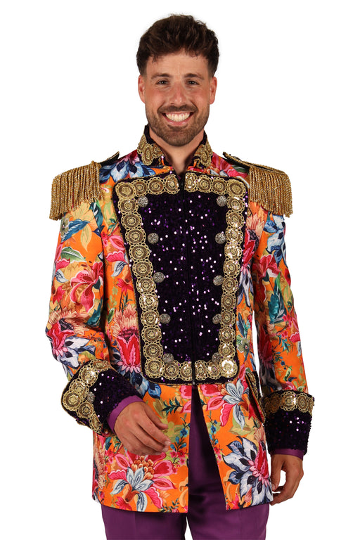 Val op tijdens carnaval met deze opvallende Flower Sensation carnavalsjas voor heren! Deze kleurrijke jas met bloemenprint in felle kleuren is perf...
